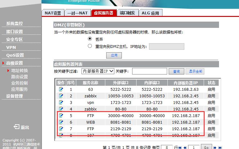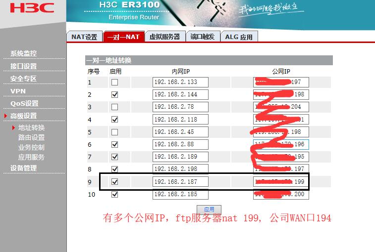 在出口ER3100 路由上做 nat转发 和 端口映射