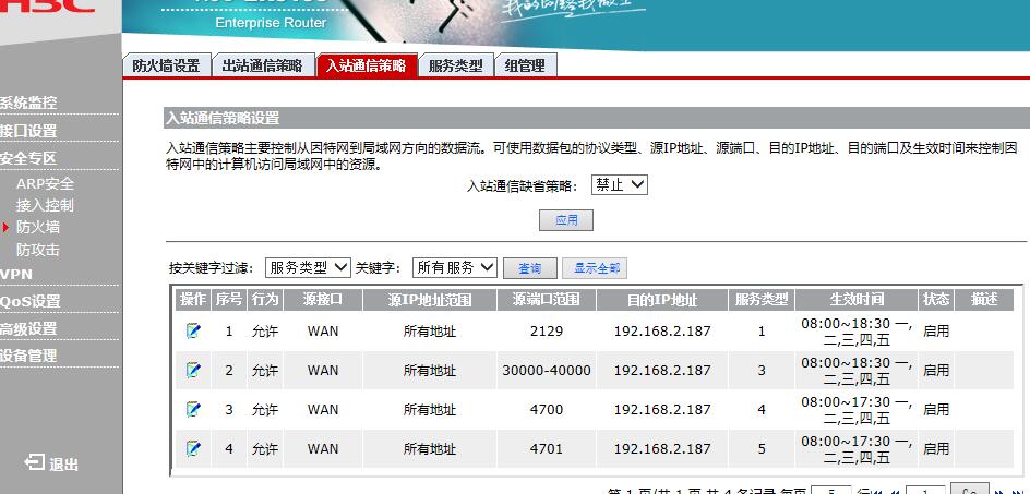 因为防火墙也开着,因此,做了入站策略
