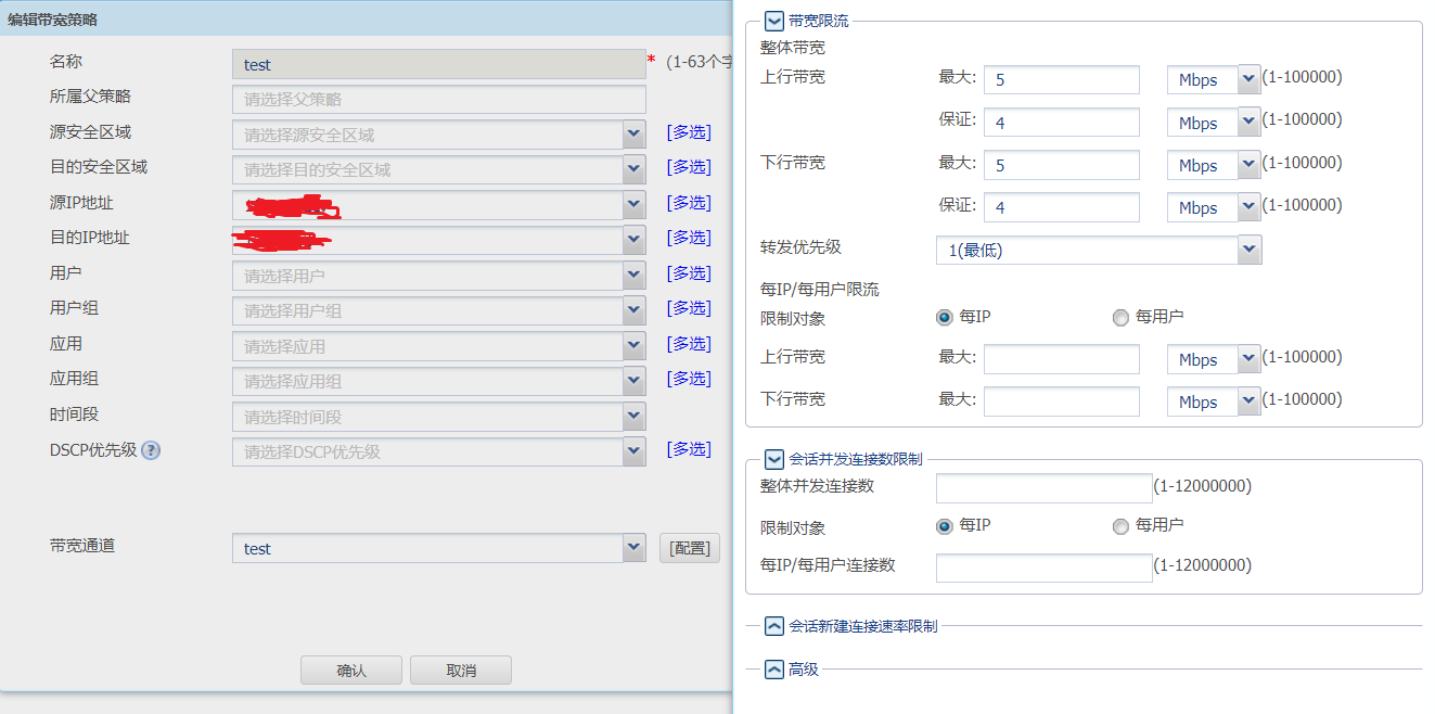 v7版本防火墙,在页面设置了带宽管理,配置如图一