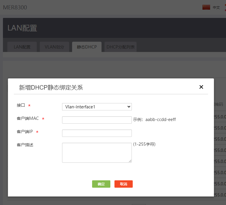1 输入静态DHCP过程中,客户描述不能正常保存,IP和MAC能够保存。