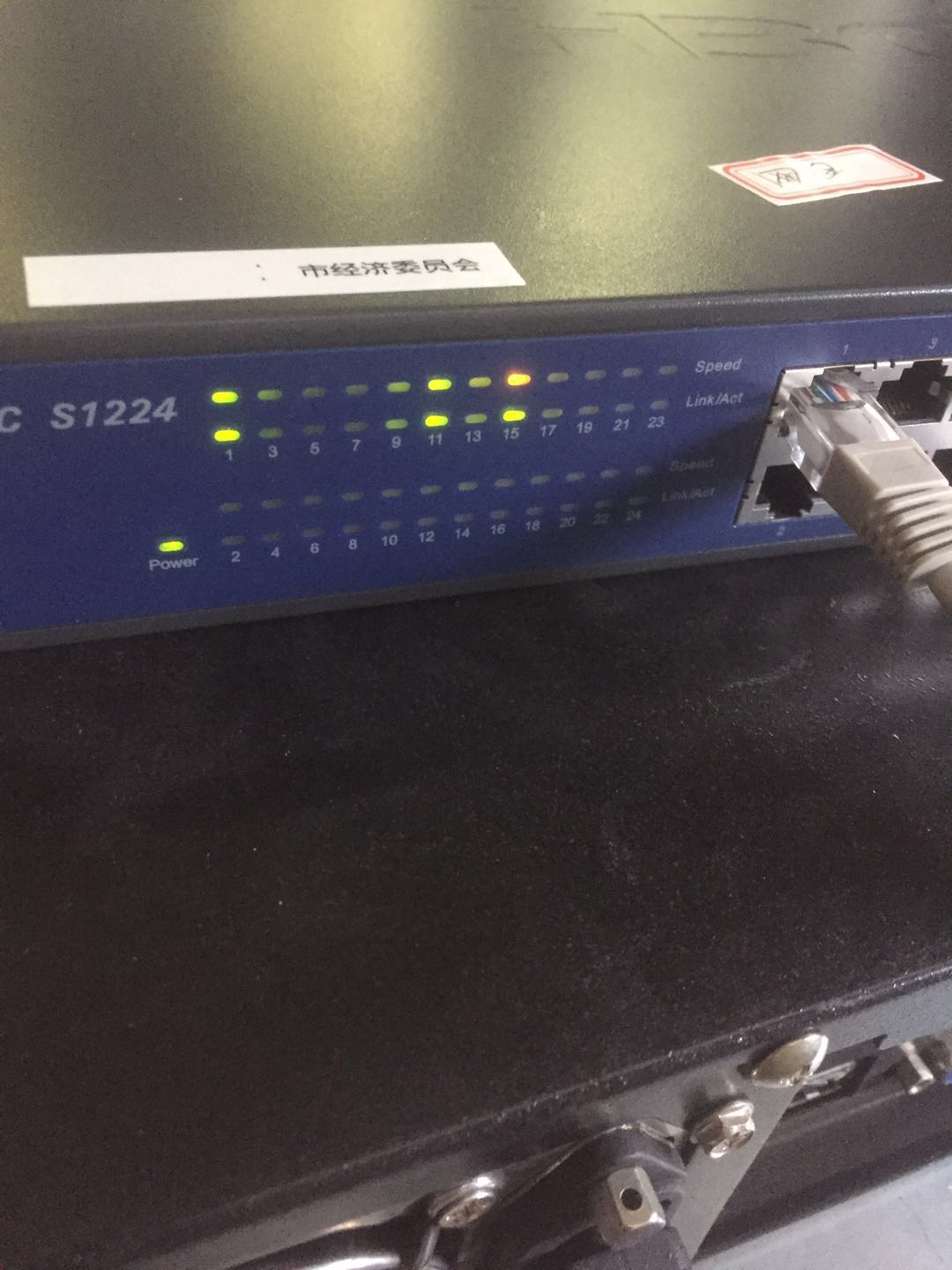 在使用H3C s1224 交换机时,加密机与交换机连接好网线后,交换机上对应的双排显示灯不正常(详见图片中的第15号双排灯),上显示黄灯,下显示绿灯,请问此问题如何处理?