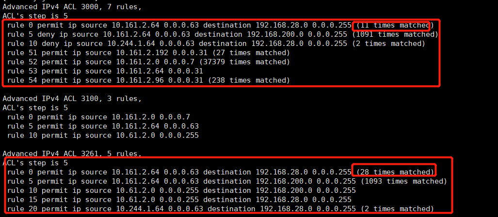 rule 0 permit ip source 192.168.28.0 0.0.0.255 destination 10.161.2.64 0.0.0.63