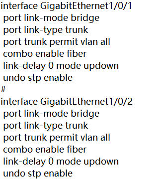 # 分别在端口GigabitEthernet1/0/1和GigabitEthernet1/0/2上关闭STP功能,并将端口配置为Trunk端口,且允许VLAN1~30通过。