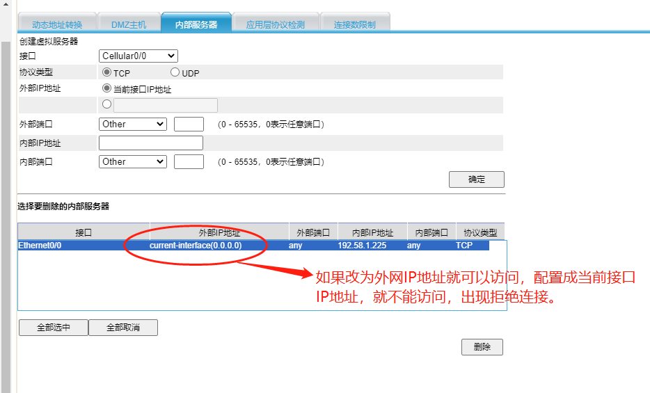 SecPath F100-C-SI 内部服务器设置了外部IP地址设置为当前接口IP地址 无法访问显示拒绝连接