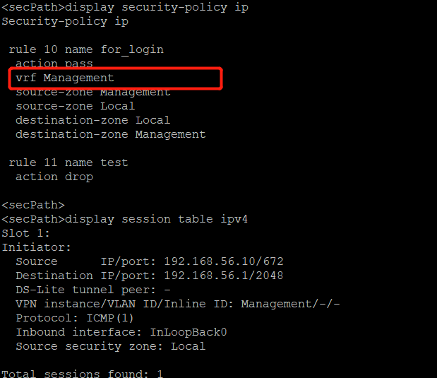 防火墙management口,加入VPN实例后,如何放通安全策略,从management口,管理防火墙?