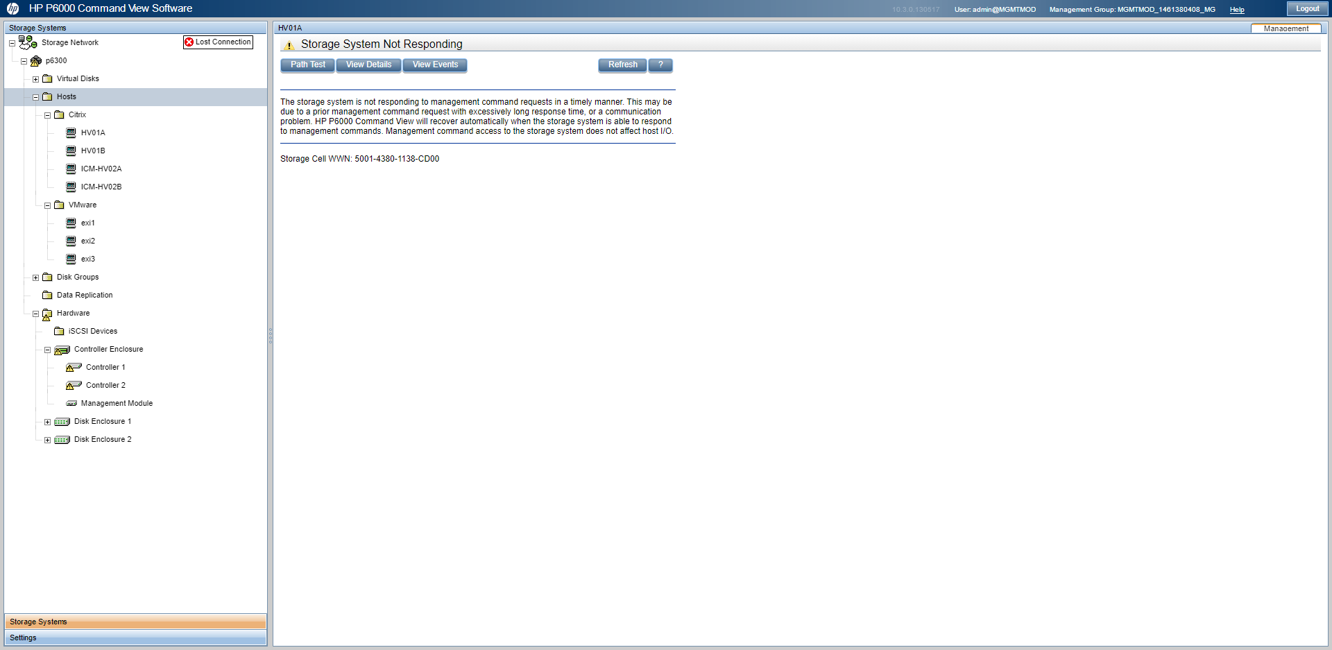 EVA存储是很老的型号了,光通过管理界面是做不了什么诊断的,联系400开个案例,得收日志分析了