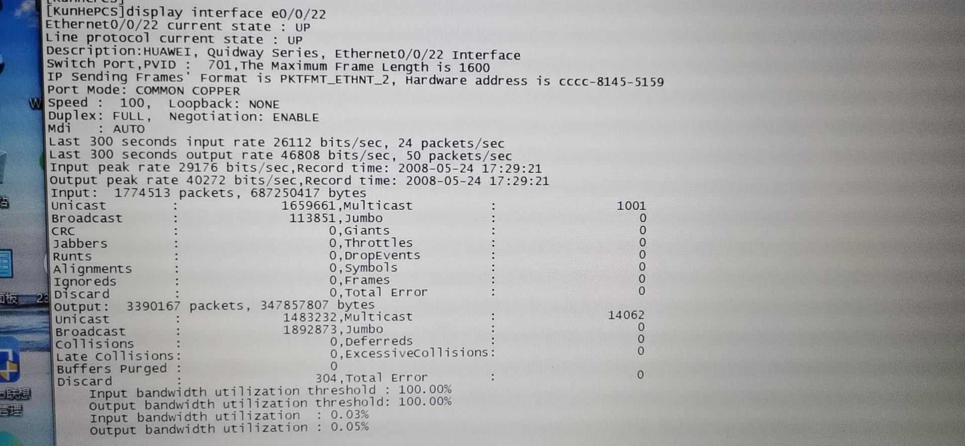 交换机接口发出广播量大于单播,丢包严重,这个接口下联18个监控设备,丢包和广播数量最为严重。