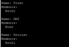 首次将防火墙下行接口reth2加入到trust区域时出现报错,报错内容如下:
