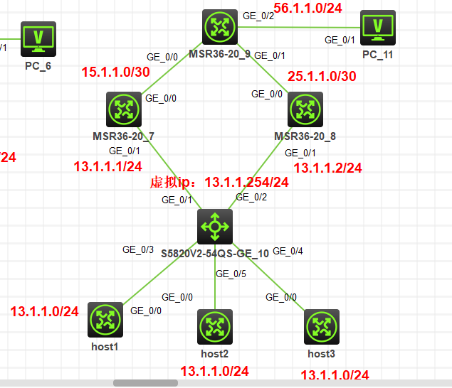 VRRP 负载均衡模式不能正确负载均衡 的给 终端分配 虚拟网关mac。HOST 1、2、3 只能获取到 路由器7的 虚拟网关mac,不能自动负载获取不到路由器8的 虚拟网关mac。