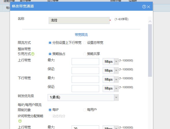 后面的这个人就独享20M带宽,之前的人使用剩下的80m,保障的应该是给一些比较重要的业务使用的,防止因为带宽被占用而导致业务不正常。