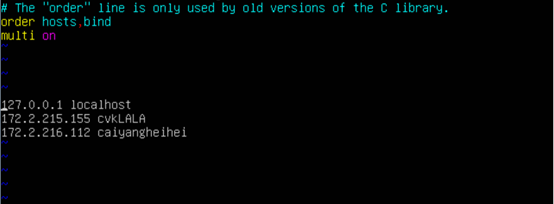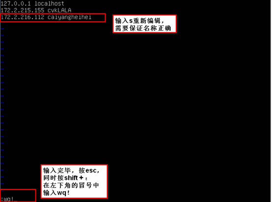 手动将172.2.216.12 caiyangheihei删掉,删掉后手动按esc退出编辑模式,在同时按shift+: