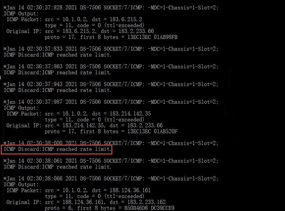 出现ICMP reached rate limit