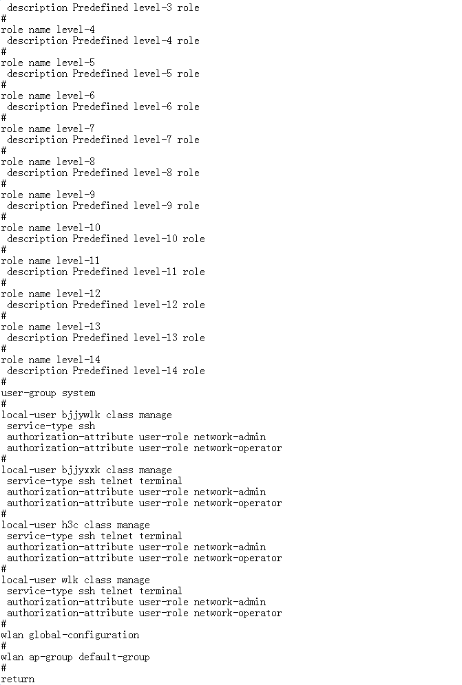[H3C-luser-manage-admin]authorization-attribute user-role network-admin