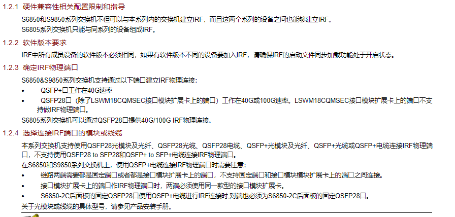 另外部署IRF需要相同型号、相同的软件版本。
