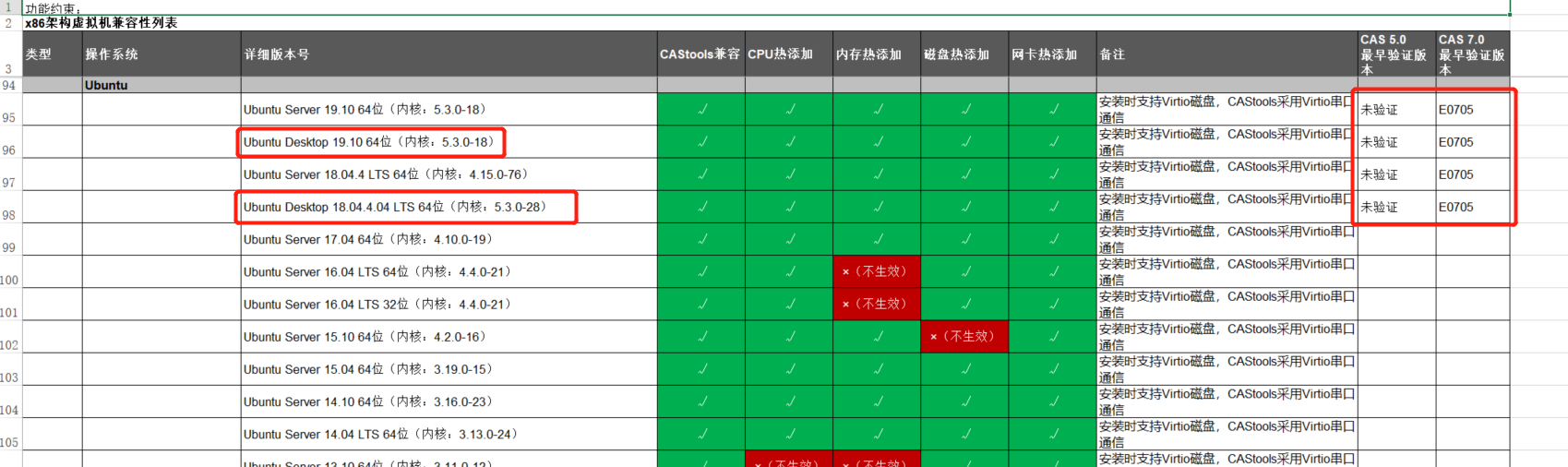 CAS 5.0和7.0的兼容适配列表都没找到适配的desktop版本列表  ,只有Ubuntu Server 和 Ubuntu Kylin 版本的,现在只要安装desktop版本的Ubuntu系统,请提供一份当前CAS版本(E0526H11)对应的desktop版本Ubuntu系统列表(或者其他CAS版本有支持的desktop linux系统也可以),感谢