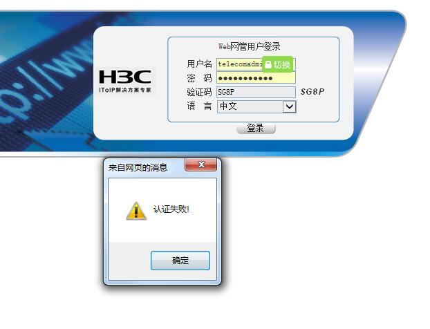 公司买的H3C路由器,型号MSR830 当时只简单配置了地址,其它什么都没有设置过,应该快有1年半多没有登陆过路由器了,昨天登陆时提示“认证失败”用户和密码都对,求大神给个相对简单的解决方法,最好不要重置路由器。