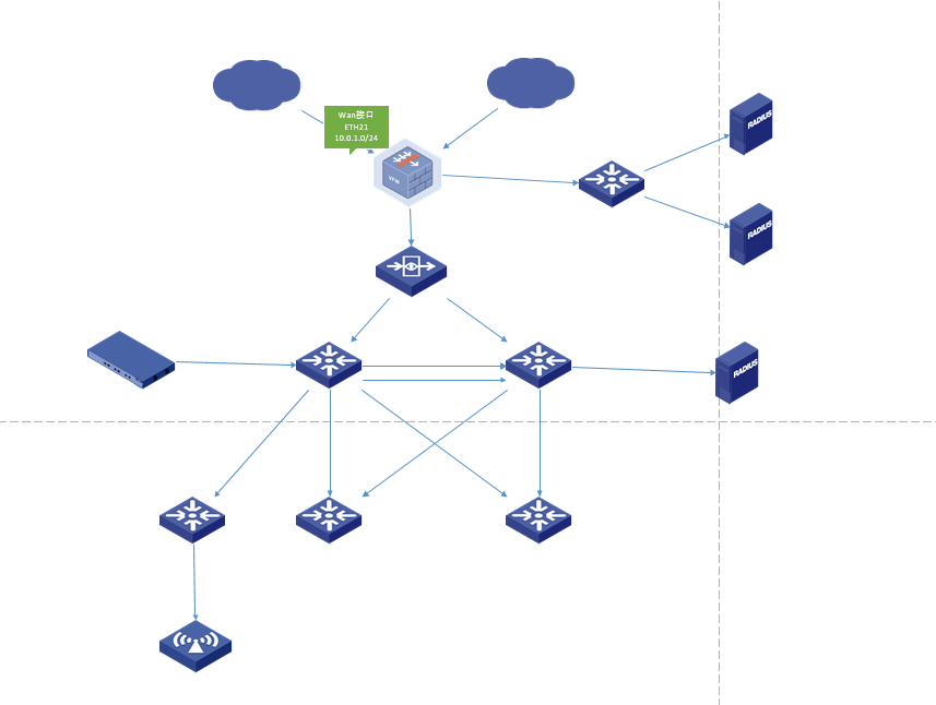 这是我的组网图,现在要实现有线和无线用户都要通过802.1X认证才能上线。我之前得想法是在接入交换机和AC上做认证配置,这样可以吗?还是其他什么方法?