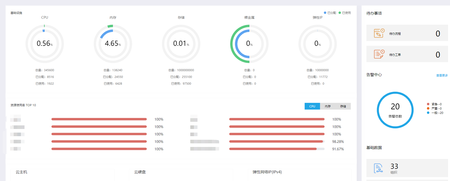 CloudOS上如何查看所有租户的资源使用情况?首页这里显示的不全面
