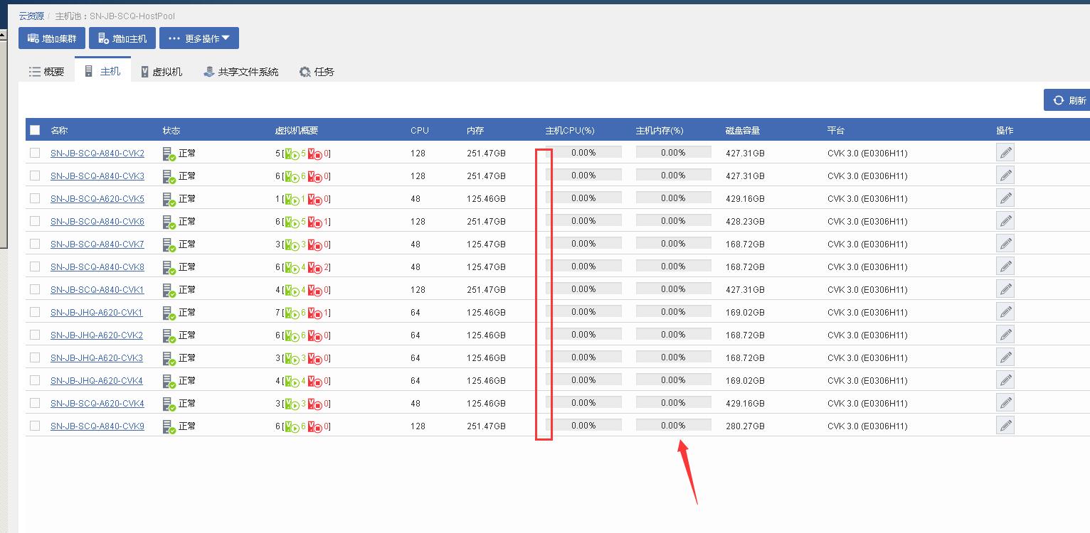 CAS平台    主机CPU利用率、内存利用率、虚拟机 CPU利用率、内存利用率 等不显示 全是0 求助