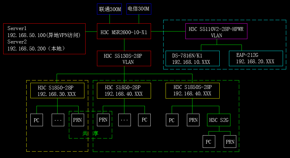 小白新手,公司组网,硬件已完成安装,路由器与交换机需要配置,请大师指导