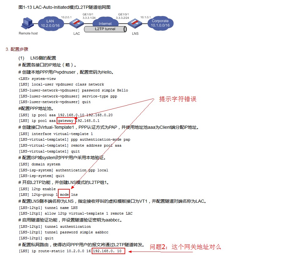 按照文档配置l2tp提示有错