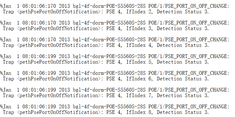 各位,请问一下POE交换机突然无法供电了,线路都没有问题,设备电源也没有问题,相关日志如下: