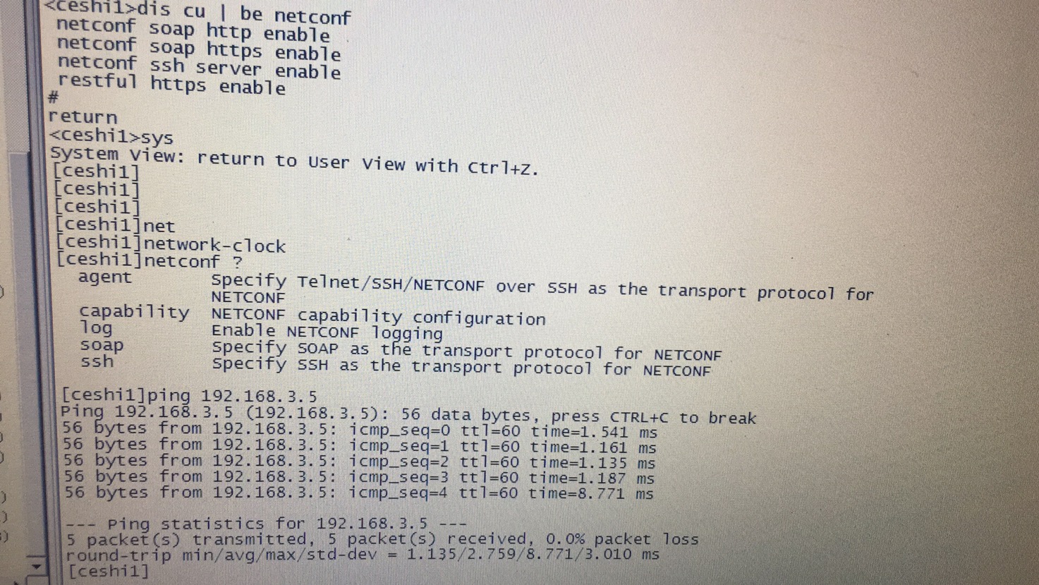 接入交换机可以ping通sdn控制器北向虚地址,目前控制器已经通过snmp连接到设备,并下发snmp-agent trap配置,另外netconf的配置纳管之前已经配完