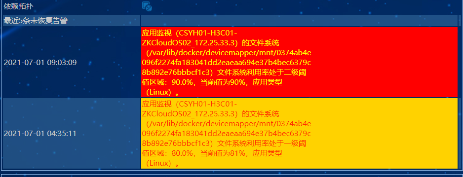 UC告警信息cloudos5.0管理节点2的文件系统利用率达到百分之90.