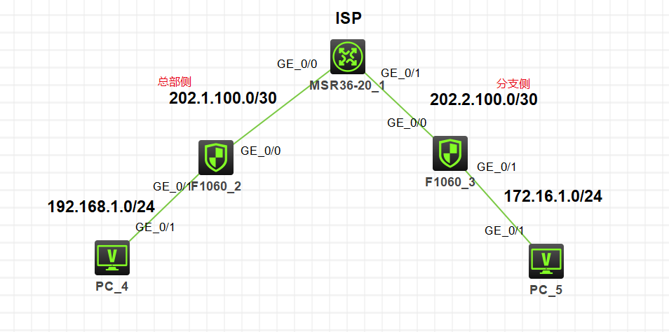 1、组网如下,我PC4本端上网都是没有问题的,ping F1060_3防火墙wan口地址都是通的