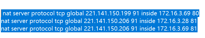看一下是不是你的外网到内网安全策略是否是放通的,另外 您这后两条 有问题啊 外网206的91端口只能映射一个内网的端口