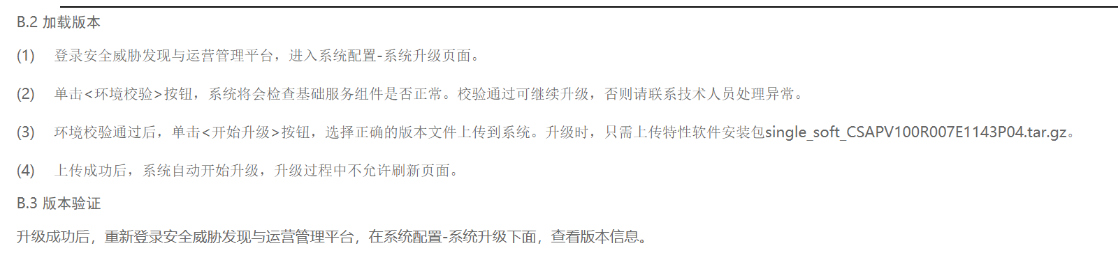 升级成功后,重新登录安全威胁发现与运营管理平台,在系统配置-系统升级下面,查看版本信息。