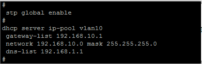 使用HCL 模拟实验:核心交换机配置vlan虚接口,在该vlan内配置dhcp时,"dhcp select server global"命令无效,配置失败;