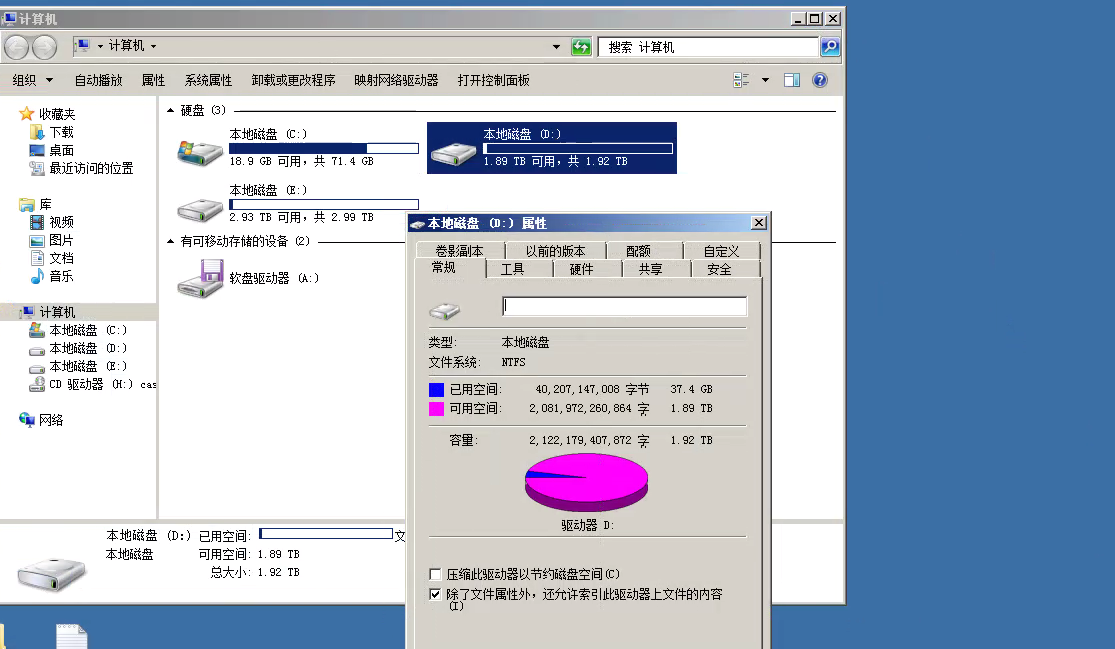 Windows2008 R2系统 ,给告警的分区分了2TB ,之前是1TB ,由于不是GPT分区,实际只能扩容1TB ,现在有2TB 可用。删除了之前700GB 数据,Windows里看到 可用空间增大,实际已用空间只有50GB 。但是 CAS 云管平台 89% 红色告警还在,麻烦你了大神 帮我问问怎么处理