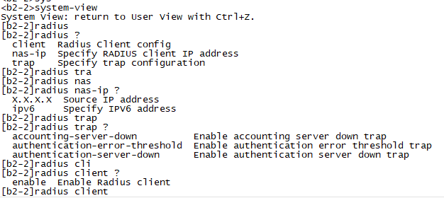 【】括号内,输入了之后打“?”,只有client,nas-ip,trap这3个选项
