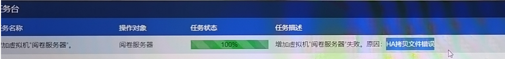 看下双机状态是否正常,CVK是否在底层修改过root密码,都会导致HA拷贝文件错误