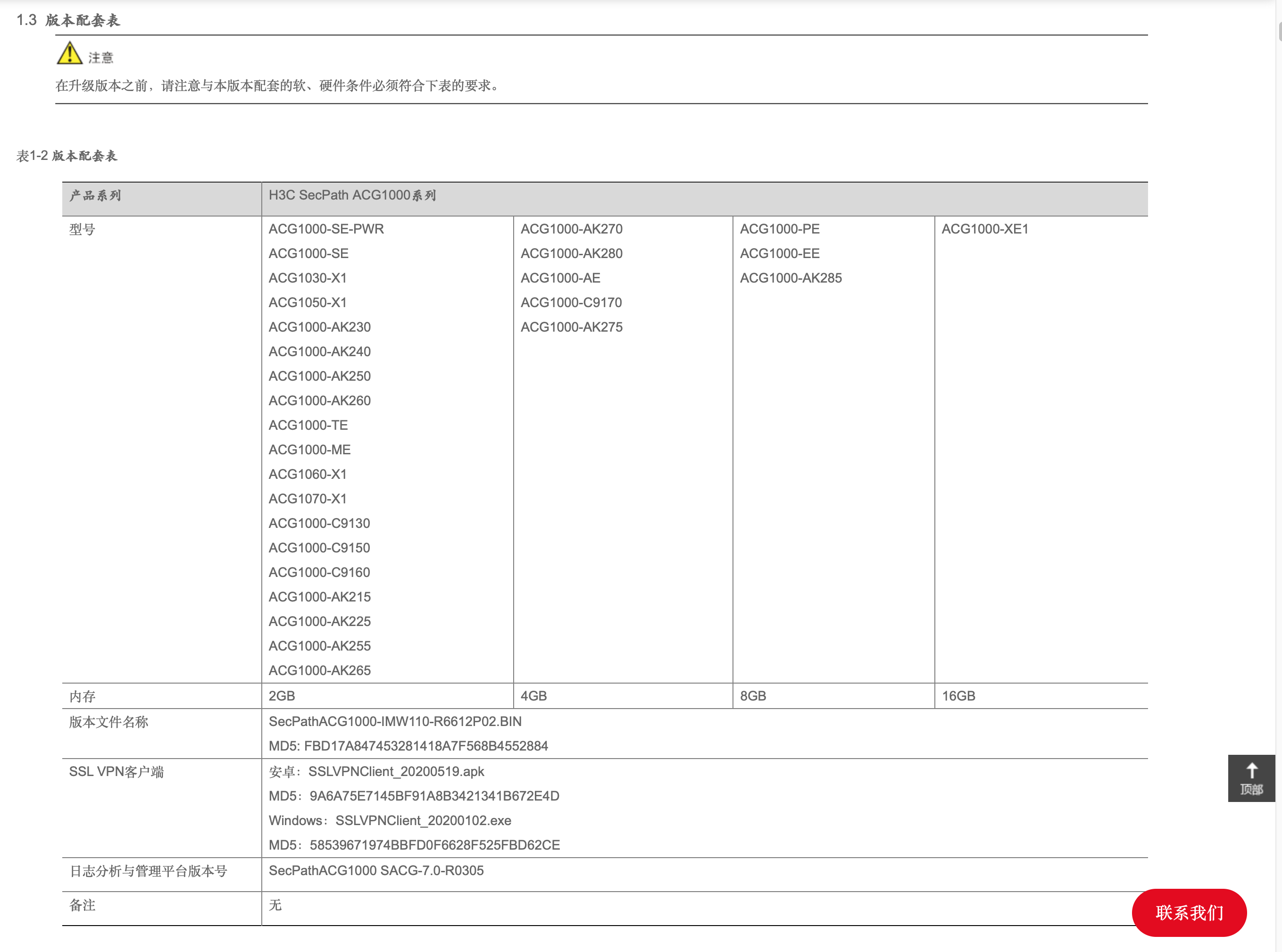 请问我现在的ACG1000-M,版本号信息如下: