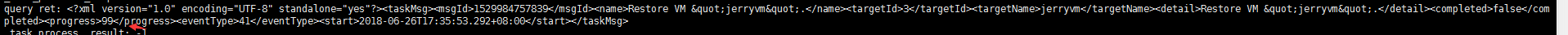 我是通过接口/cas/restore/vm来恢复虚拟机的,然后会返回一个消息id,我通过接口/cas/casrs/message/{id}来查询进度,结果对应增量点的恢复,直接就99%了,然后等很久才恢复成功变为100%。由于增量点备份的数据很小,感觉是这个进度是只是那个增量点的进度,而不是整个恢复链的总进度呢?是这样的吗?为撒不是整个恢复链的进度呢?