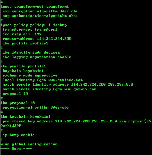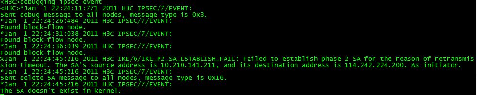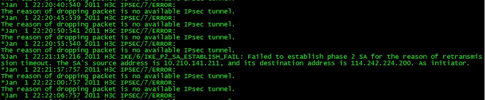 好不解决了4G拨号的灵异问题,现在VPN也存在灵异问题,集团的VPN与MSR810之前是调试好IPSecVPN连接的,集团管理员说没有动过我们的配置,但是我们的设备也没改过配置,最近忽然无法建立成功。