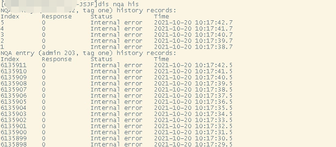 现场配置NQA后,发现ping结果为" internal error",如图