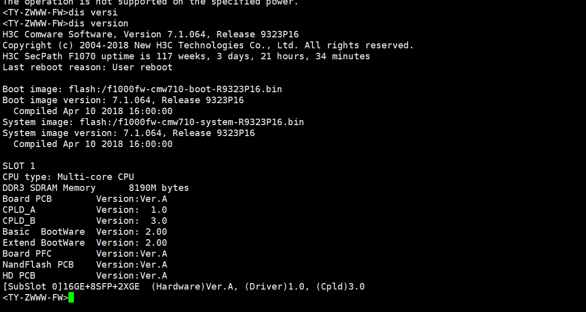 现有一台F1070,版本信息如下: