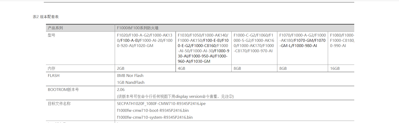 官网版本版本配套表要求bootware版本2.06 目前未2.00
