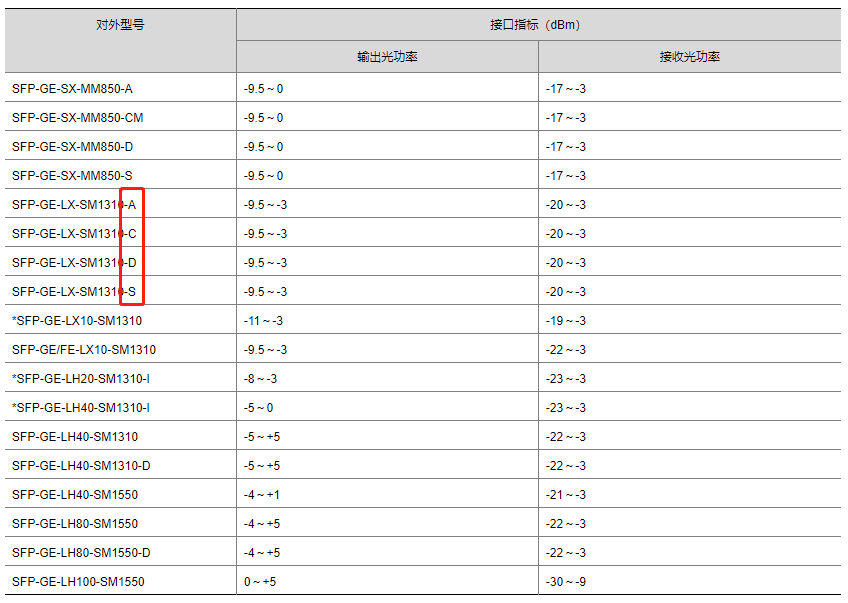用户(如政府学校)用的型号,另外还有一个型号为SFP-GE-LX-SM1310-D,字母D代表的是