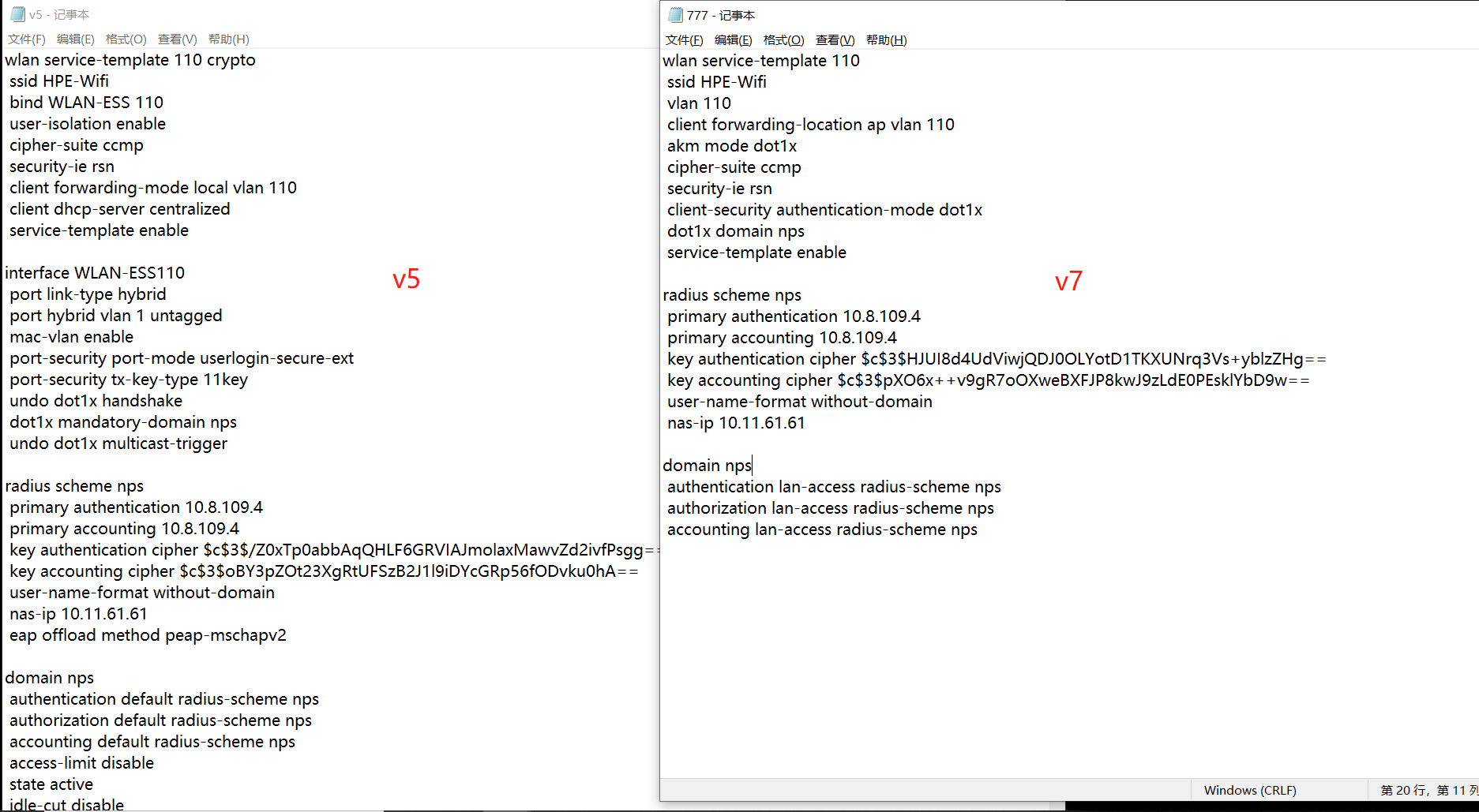 以下是v5 v7配置对比,已排除ac到服务器不通,密码问题,还有其他配置会导致此问题吗