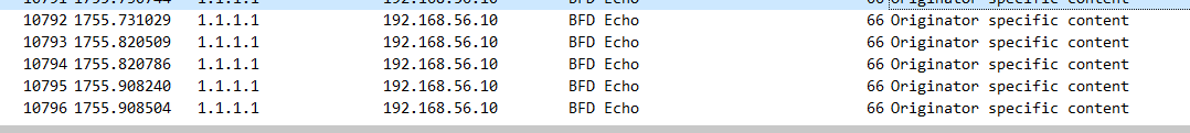 在配置bfd的bfd echo-source-ip的时候为什么要配置一个自己没有的地址?配置好后我抓包看了发送报文确实用的是bfd echo-source-ip 1.1.1.1,但是对端怎么给我回包?为什么没有抓到对端的回包?