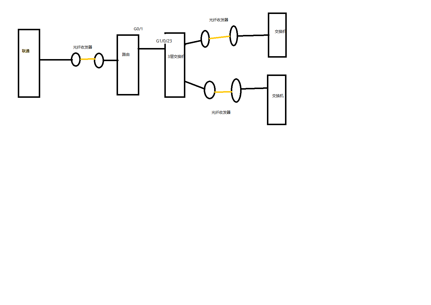 经过联通机柜的一个板块端口--光纤收发器-- 连接到我们自己的路由。    最下层交换机的电脑一切正常,能上网。