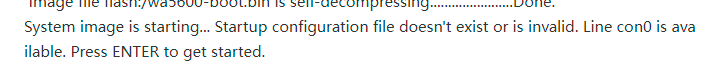 System image is starting... Startup configuration file doesn't exist or is invalid. Line con0 is available. Press ENTER to get started.
