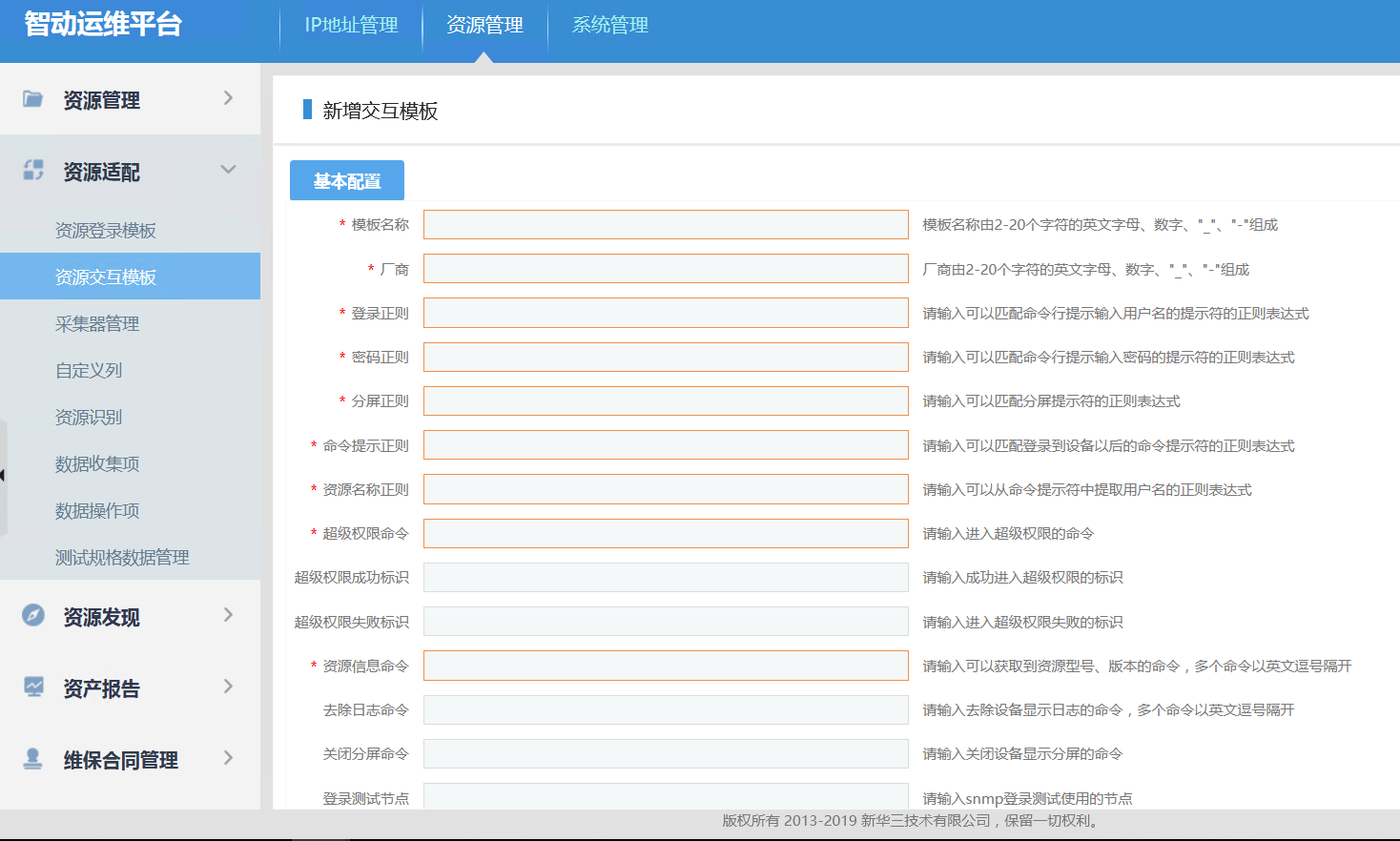 想问下,智动运维平台3.1R版本,怎么添加信锐交换机的资源交互模板?