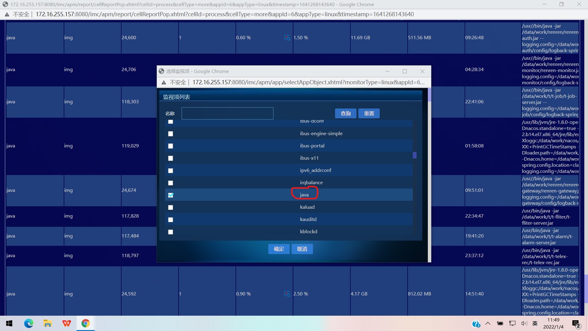 图中的Java只是做一个简单的案例,监控的Linux应用下的进程出现相同的进程名称