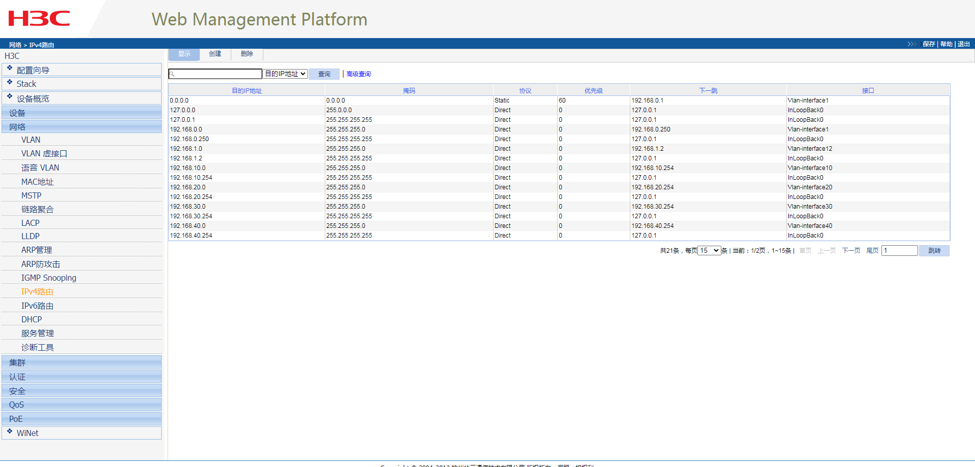 3、如果外网是已经直接接在路由器上的,保证交换机的每个网段和路由器是可通信的