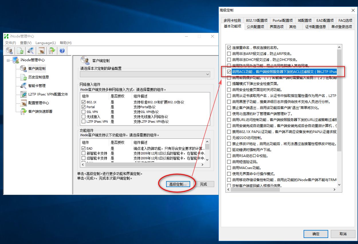 在管理中心定制iNode时启动下ACL功能: